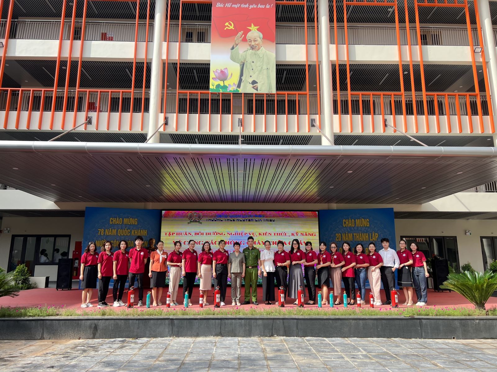 Không chỉ giúp các thầy cô giáo và cán bộ giáo viên nhà trường trau dồi các kĩ năng, Đại úy Hoàng Văn Hải cùng các phụ huynh học sinh đã gửi tặng món quà đặc biệt cho các lớp học là các bình chữa cháy.